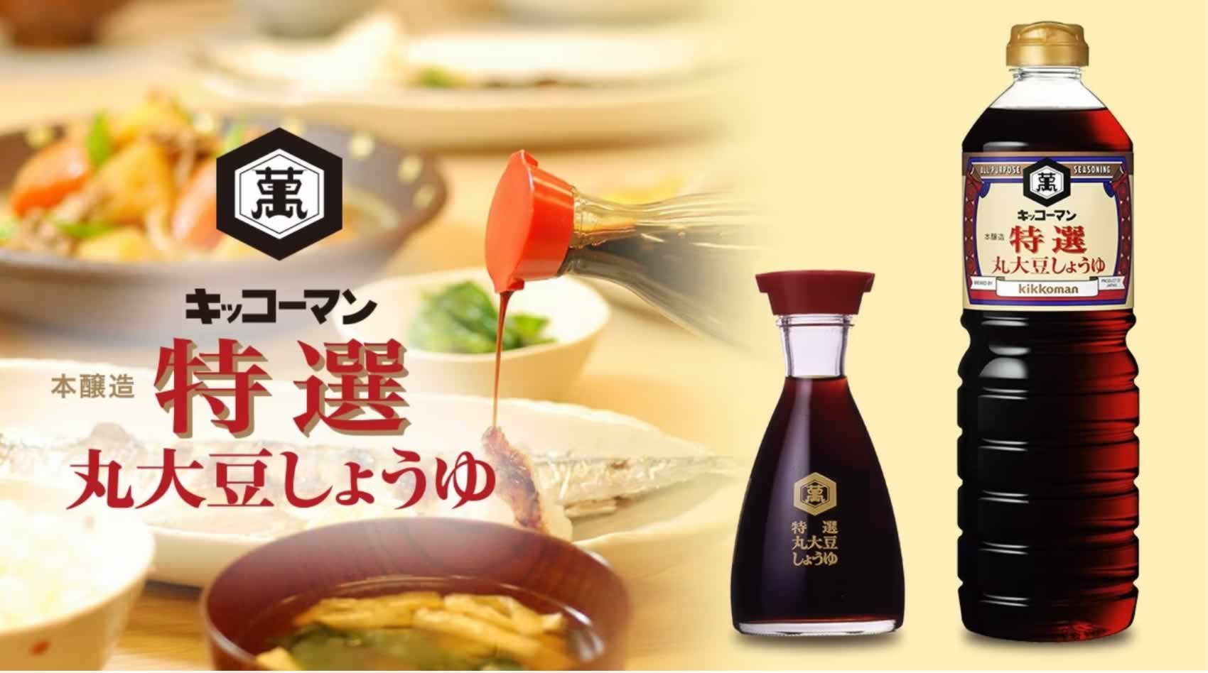 キッコーマン 特選丸大豆しょうゆ は、特別な規格の丸大豆しょうゆで、大豆の旨みを丸ごと引き出しています。